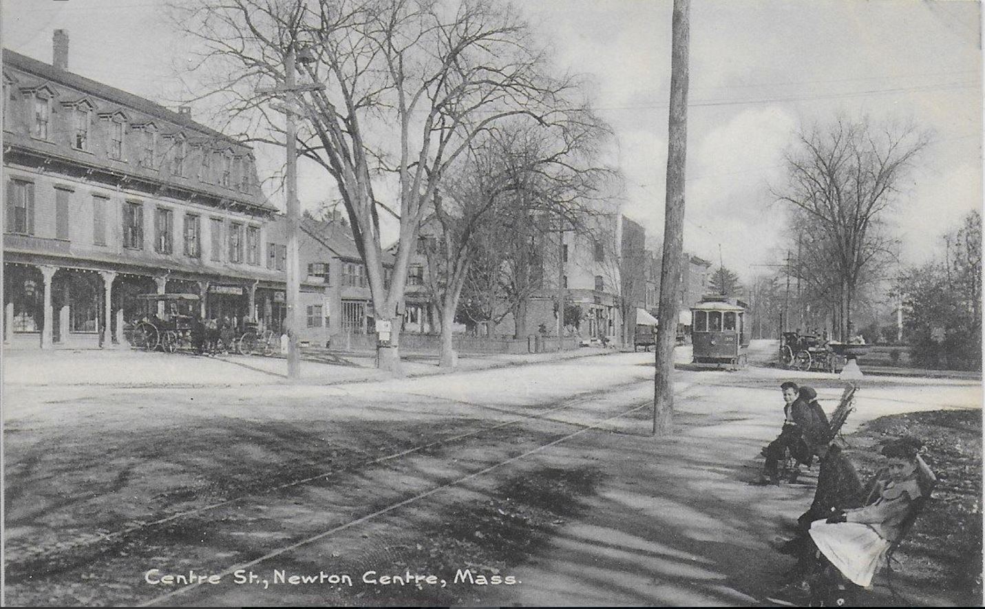 While Newton Centre was developing as a religious center for the township, it lagged behind the more accessible northern villages in the development of residences and business enterprises. In 1848, town meetings were shifted to the more prosperous village of West Newton, cementing a longstanding rivalry between the two villages. At the same time, Newton’s growing industrial community was focused on the villages along the Charles River. As late as the mid-19th century, Newton Centre was a sparsely settled village with only ten buildings facing the common and a few structures located along the outlying roads.
