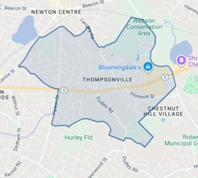 Thompsonville is one of the villages within the city of Newton. Thompsonville has been traditionally centered near the intersection of Jackson Street and Langley Road. It abuts Chestnut Hill so residents here can take advantage of proximity to the Shops at Chestnut Hill. Thompsonville is one of the lesser known villages in Newton and does not have a village center as most of the other villages do.