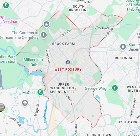 West Roxbury is also home to Roxbury Latin School, the VA Hospital, Brook Farm, the Historic Westerly Burying Ground and the Irish Social Club of Boston